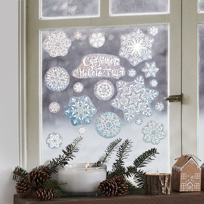 Наклейки новогодние, интерьерные, голография «Снежинки», 21 х 29.7 см, Новый год