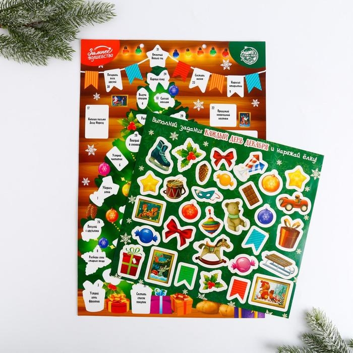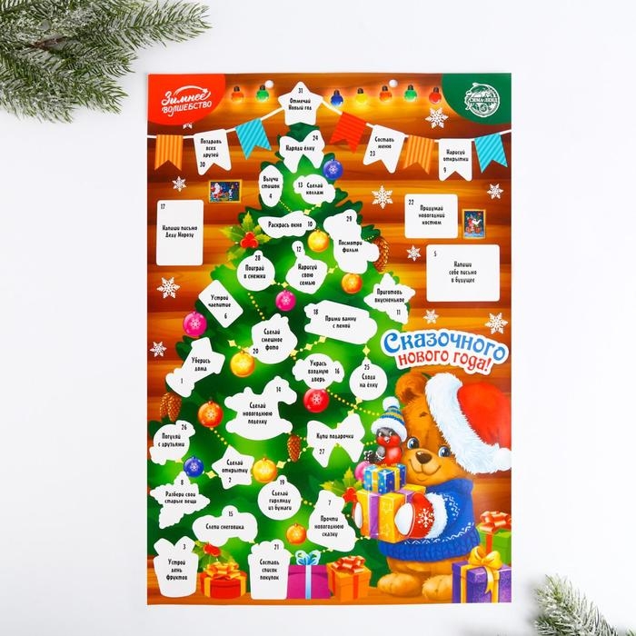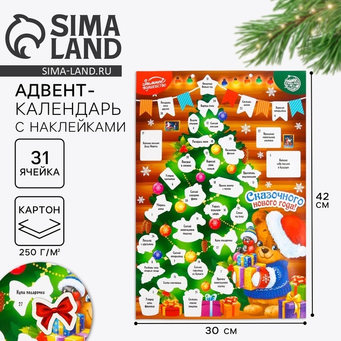 Адвент календарь 2025 новогодний с наклейками «Новый год: Сказочного года», 30 х 42 см, новогодняя серия