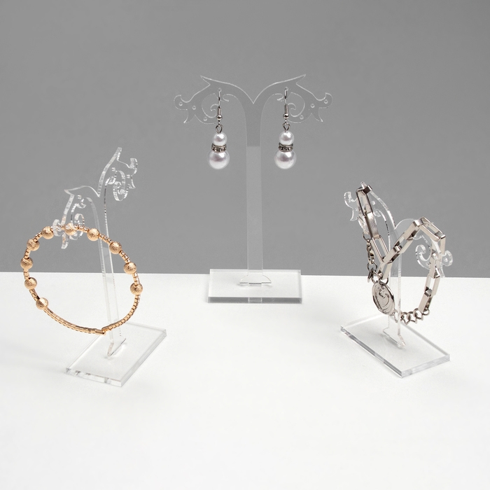 Подставка под серьги ажурная, набор 3 шт., h=8,5, 10, 12 см, цвет прозрачный