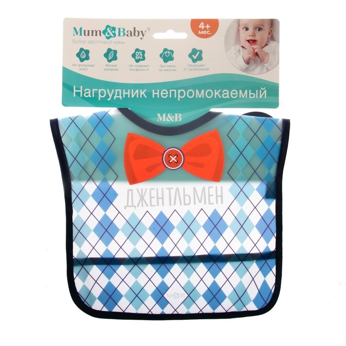 Нагрудник для кормления «Джентльмен» непромокаемый на липучке, с карманом