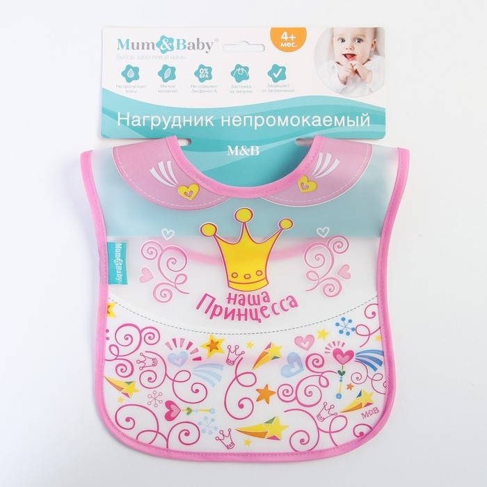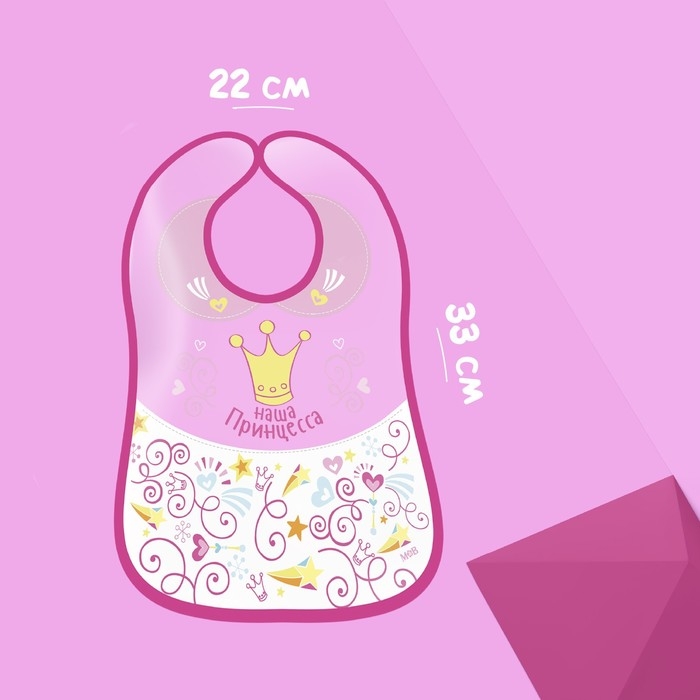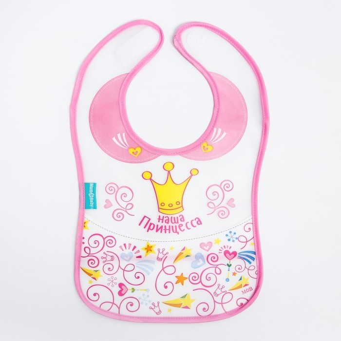 Нагрудник для кормления «Наша принцесса» непромокаемый на липучке, с карманом