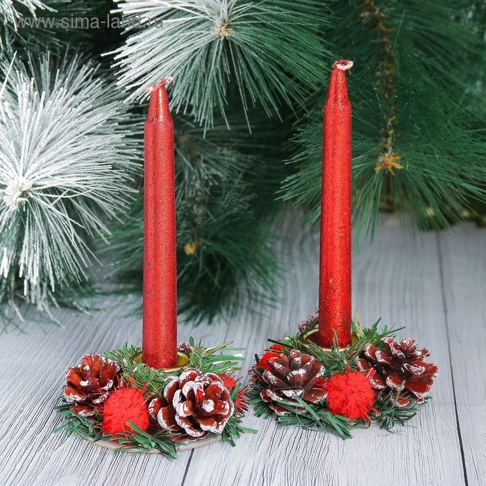 Свеча новогодняя с подсвечником "Блеск" (набор 4 шт) 3,5х11х15 см, красный