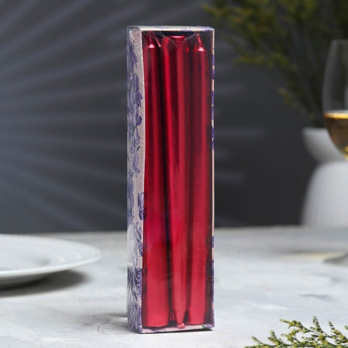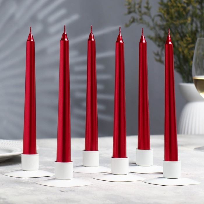 Набор Свечей античных, 1,9х 20 см, 6 штук, рубиновый металлик