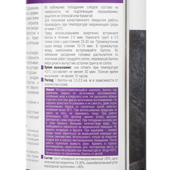 Грунт универсальный, алкидный VIXEN серый, аэрозоль, 520 мл