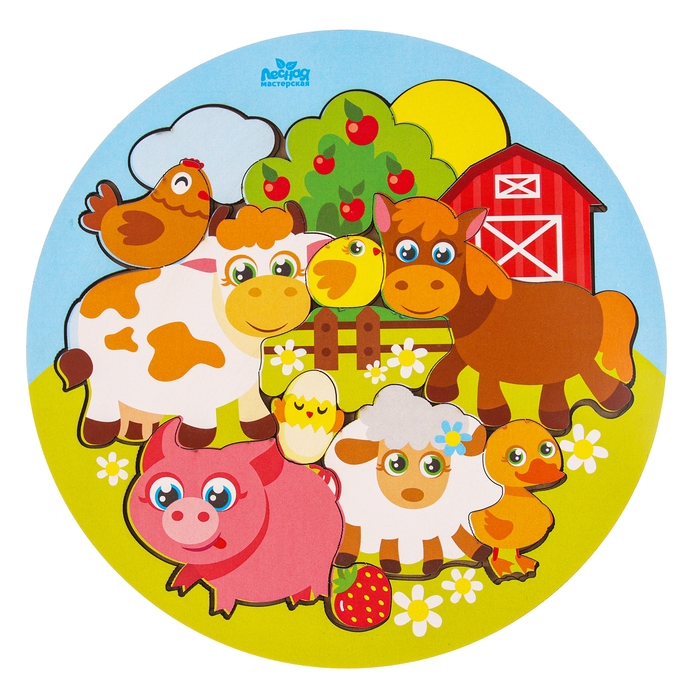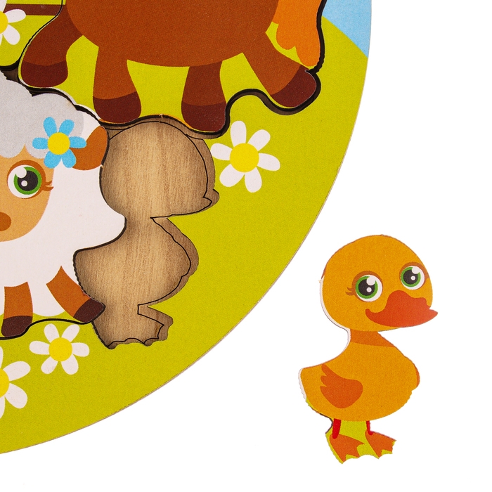 Необычная головоломка с животными сочетает в себе пазл и рамку-вкладыш. Задача крохи — правильно разместить красочные фигурки на деревянном основании, чтобы получилась цельная картинка.