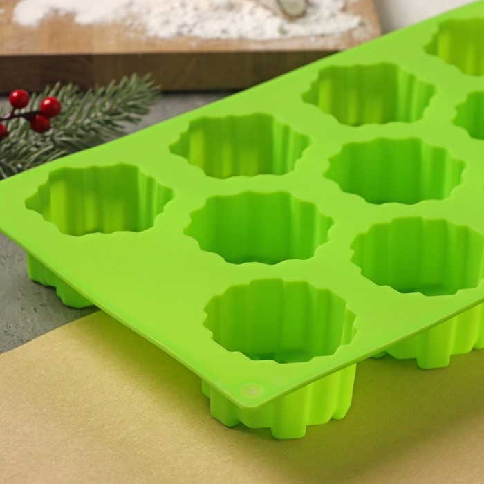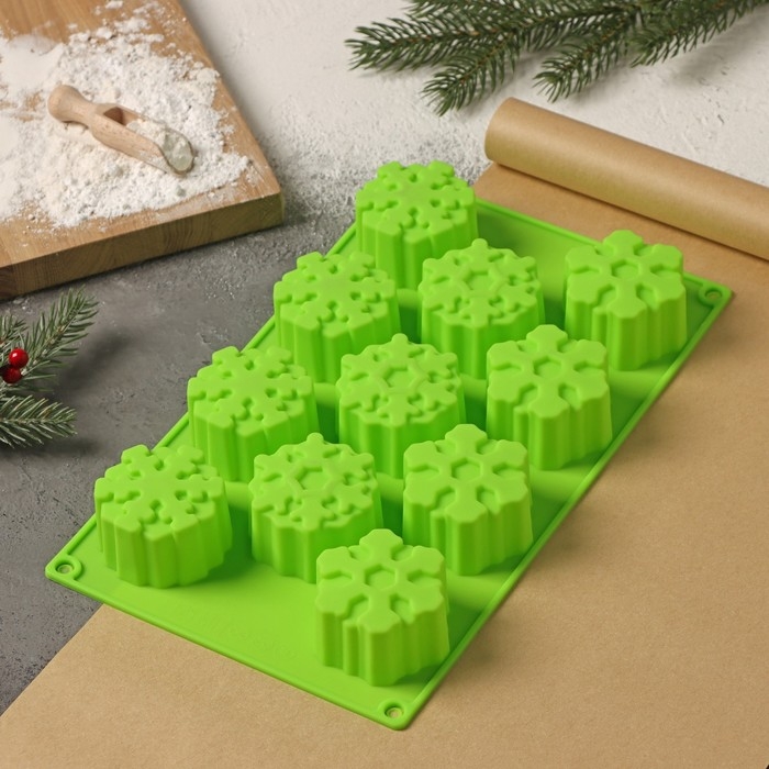 Форма для выпечки новогодняя Доляна «Снежинка», силикон, 30×17,5 см, 11 ячеек, цвет салатовый