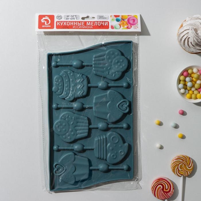 Форма для леденцов Доляна «Капкейк», силикон, 27,5×16,5 см, 6 ячеек (6×7 см), с палочками, цвет МИКС
