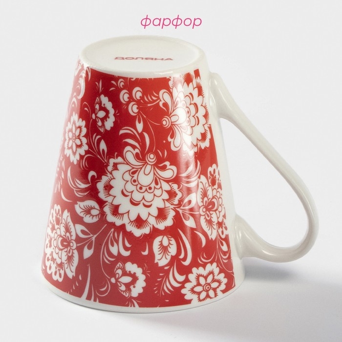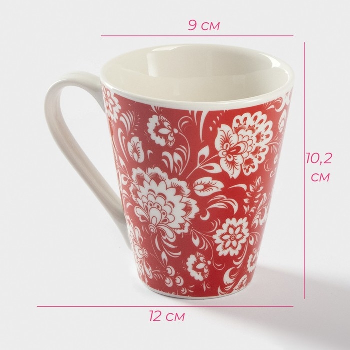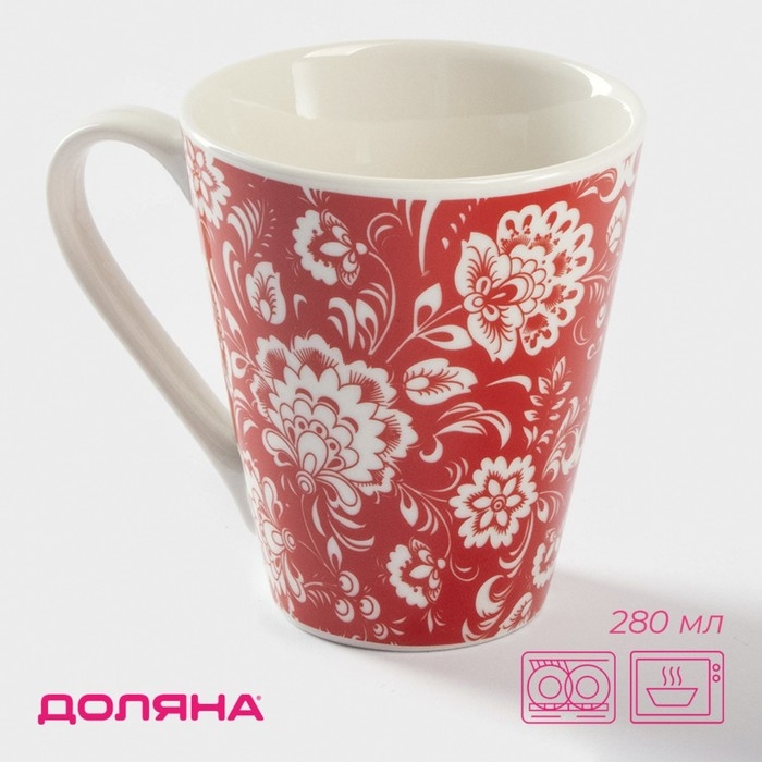 Кружка фарфоровая Доляна «Цветы на красном», 280 мл, цвет красный