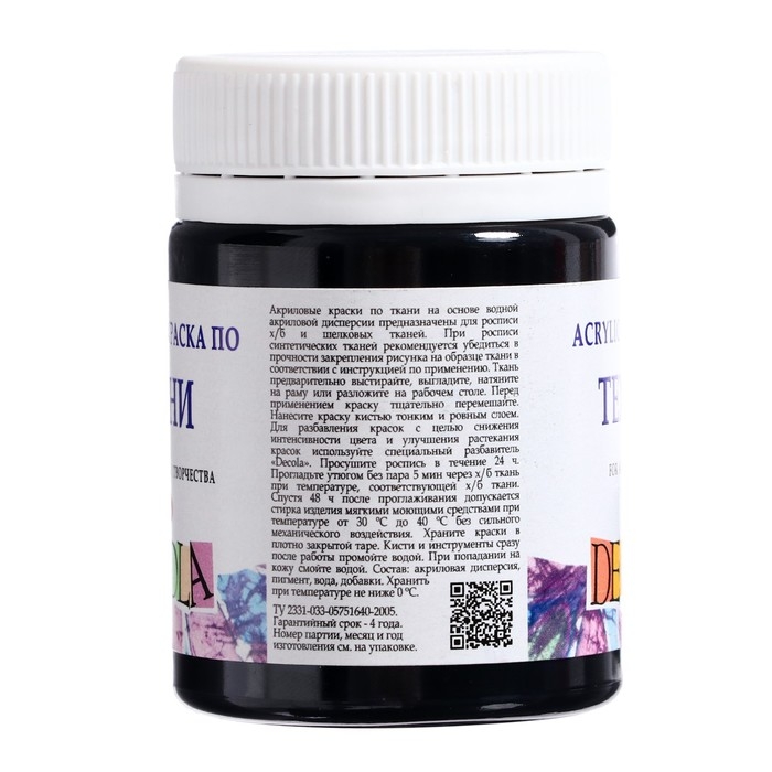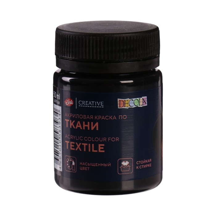 Краска по ткани, банка 50 мл, ЗХК Decola, Чёрная 4128810, (акриловая на водной основе)
