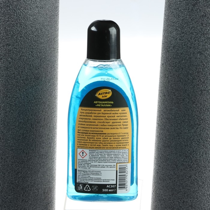 Концентрированный автошампунь специально разработан для бережной мойки и ухода за кузовом автомобиля, окрашенным краской "металлик", "хамелеон" или "перламутр".