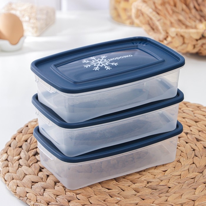 Набор контейнеров для замораживания продуктов «Морозко», 3 шт, 700 мл, цвет прозрачный, крышки МИКС