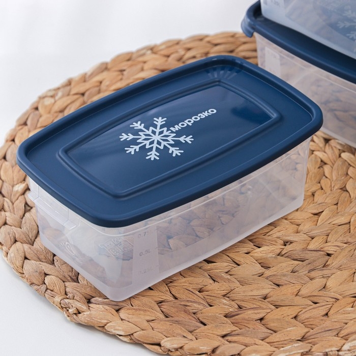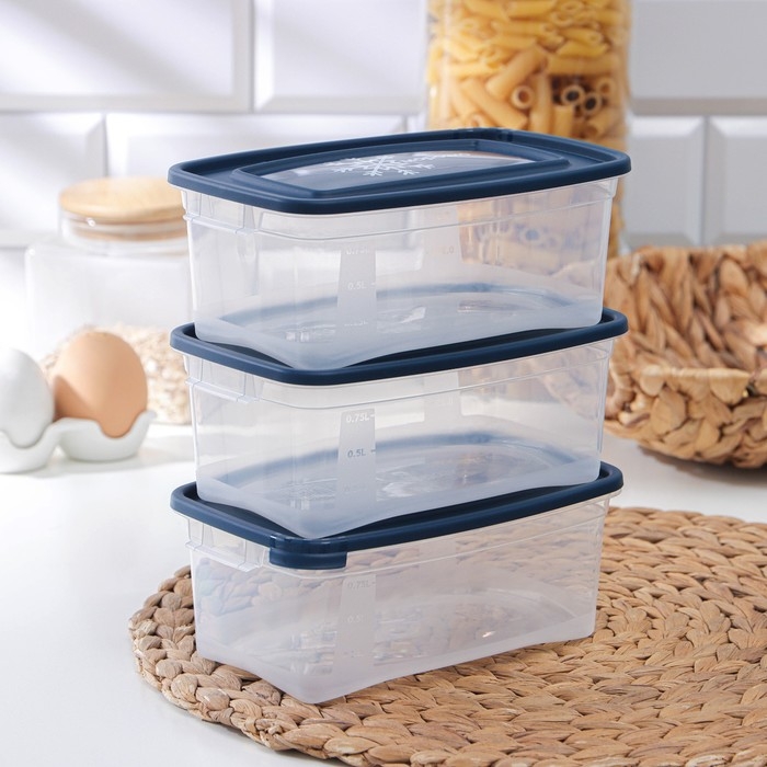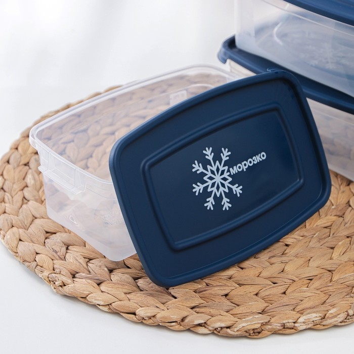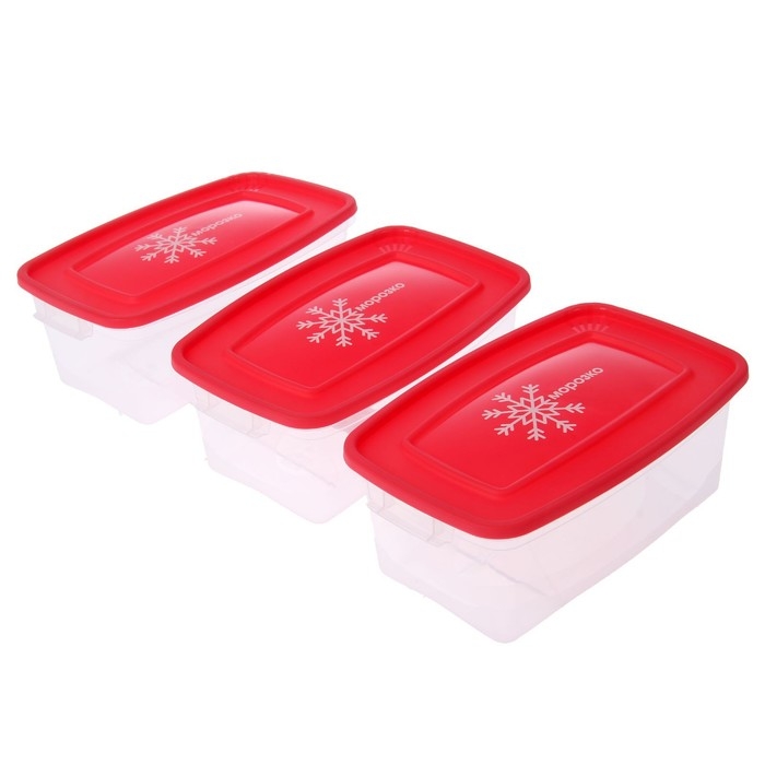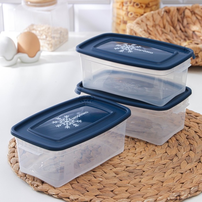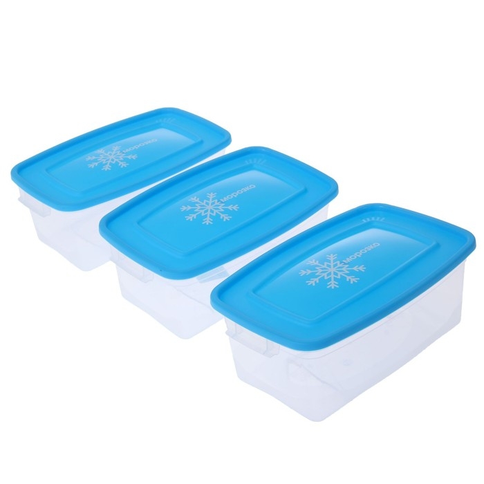 Набор прямоугольных контейнеров для замораживания продуктов «Морозко», 1 л , 3 шт, прозрачные, крышки микс
