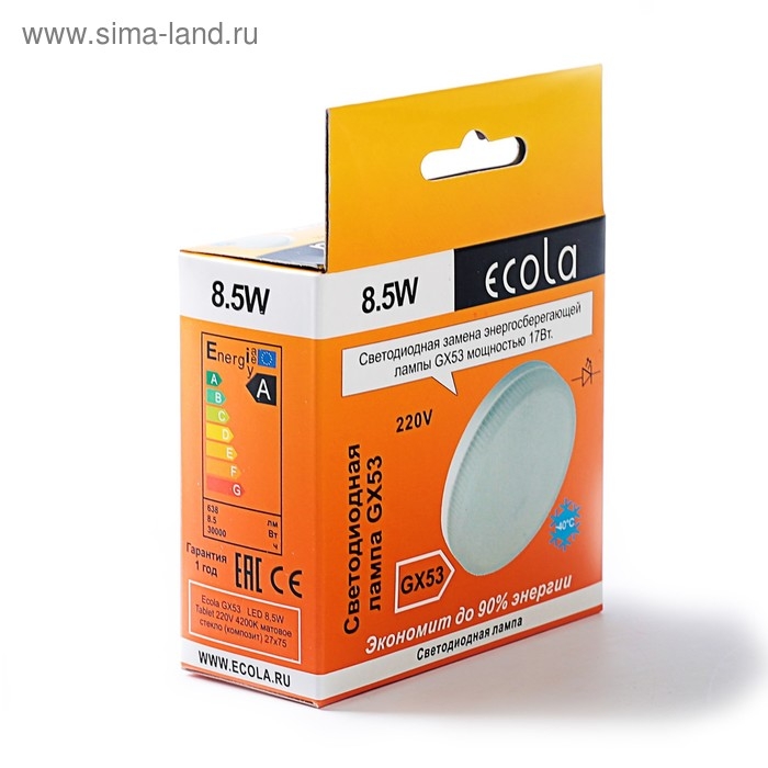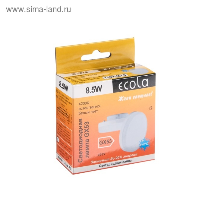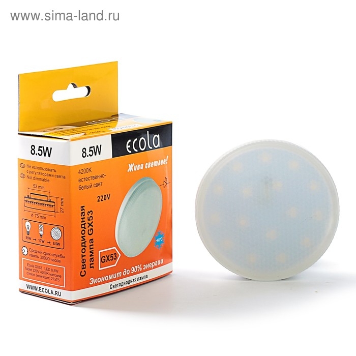 Лампа светодиодная Ecola, GX53, 8.5 Вт, 4200 K, 220 В, 27x75 мм, матовое стекло
