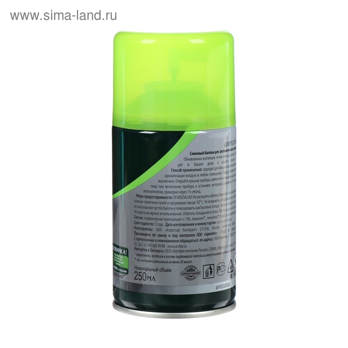 Способ применения: в соответствии с инструкцией для автоматического освежителя воздуха, вставить аэрозольный баллон в диспенсер и использовать освежитель по назначению.