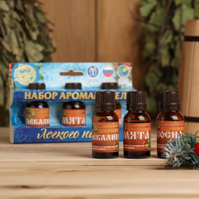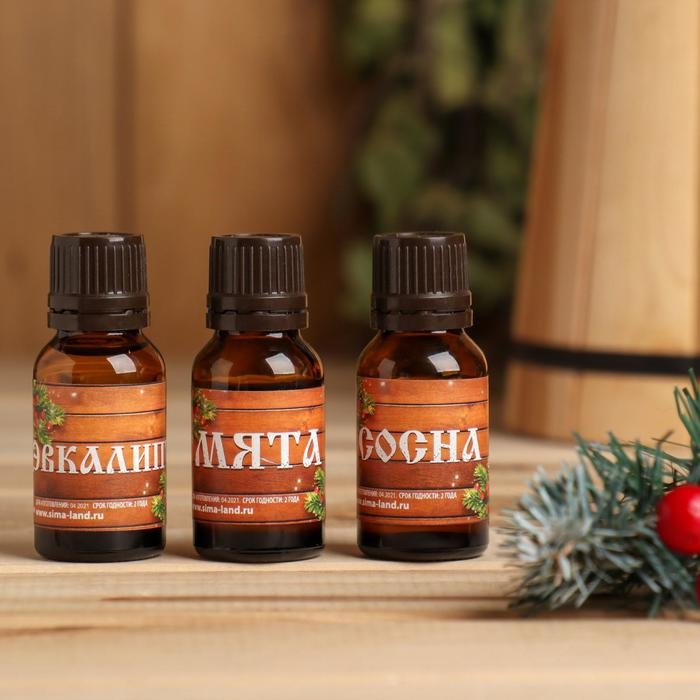 Набор эфирных масел 3 шт по 15 мл, сосна, эвкалипт и мята "С Новым годом! С легким паром!"