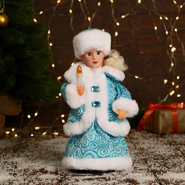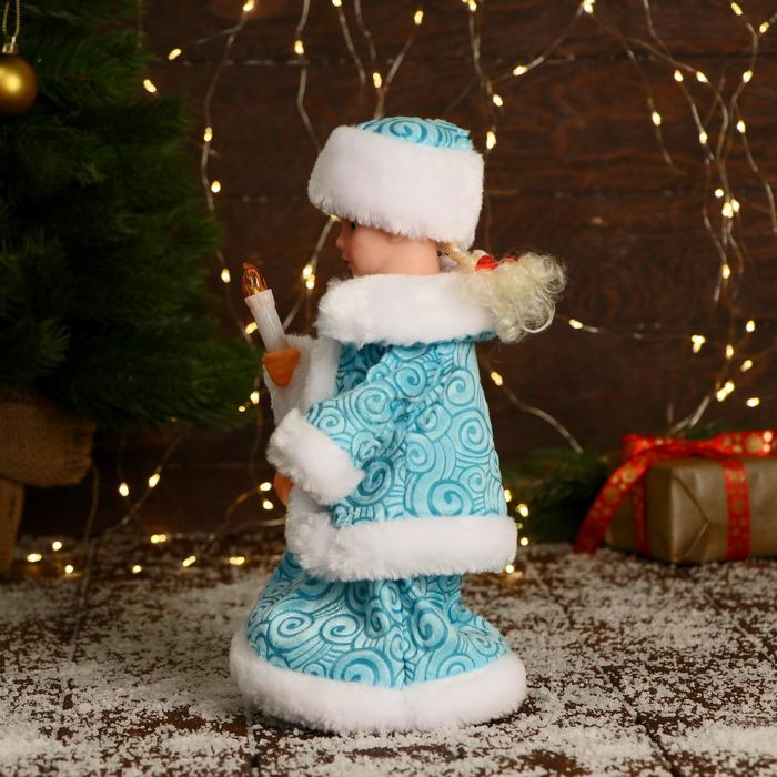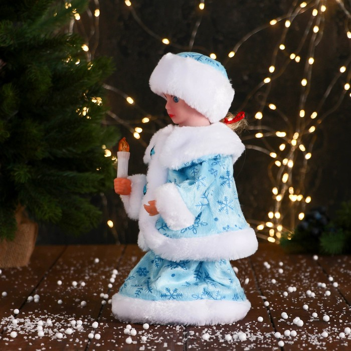 Снегурочка "Пуговка ромбик" с подсветкой, двигается, 30 см, голубой