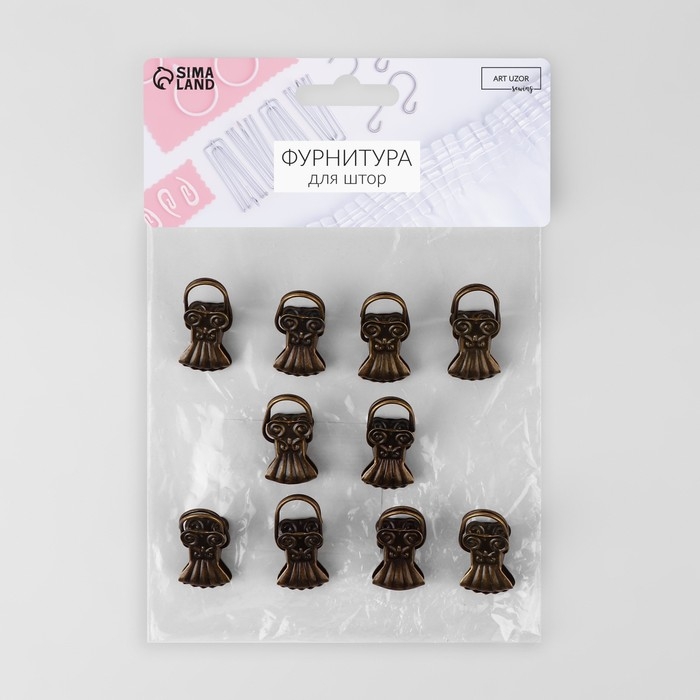 Зажим для штор «Ракушка», 30 × 15 мм, 10 шт, цвет бронзовый