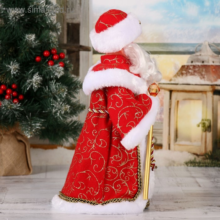 Дед Мороз "Кудрявая борода" двигается, 37 см, красный