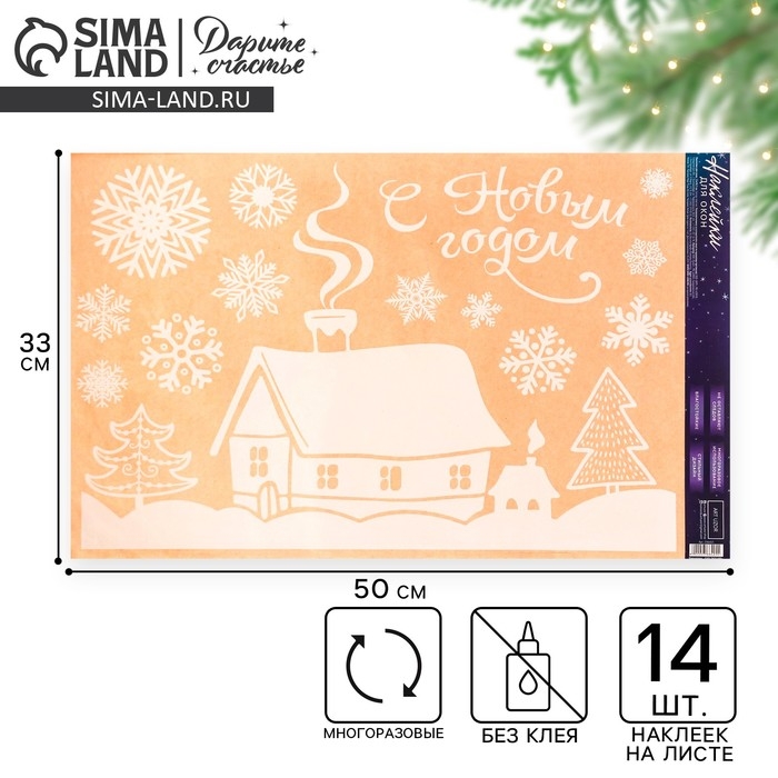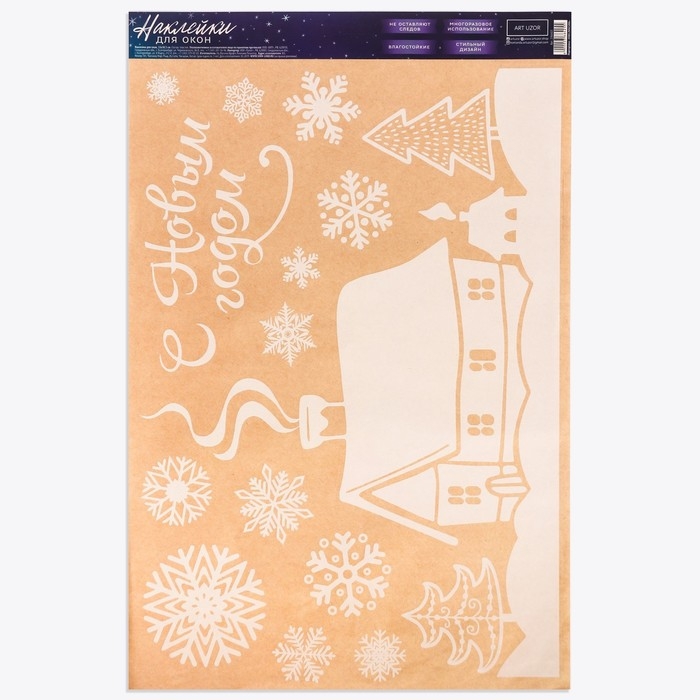 Наклейки новогодние на окна «Домашний праздник», многоразовые, 33 х 50 см, Новый год