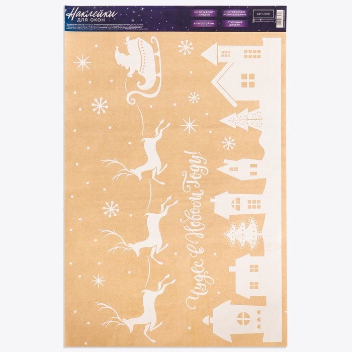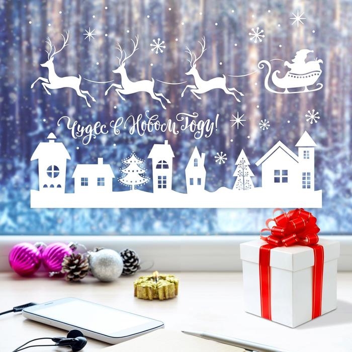 Наклейки новогодние на окна «Чудес в Новом Году», многоразовые, 33 х 50 см, Новый год