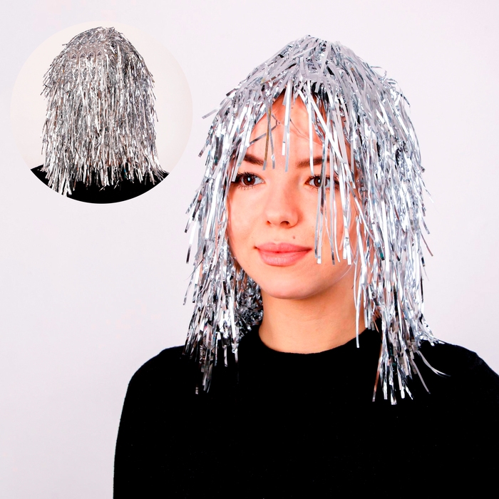 Карнавальный парик «Дождь», 35 см, цвет серебряный