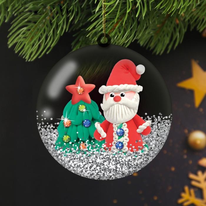 Ёлочный шар своими руками на новый год «Дед Мороз» с массой для лепки, новогодний набор для творчества