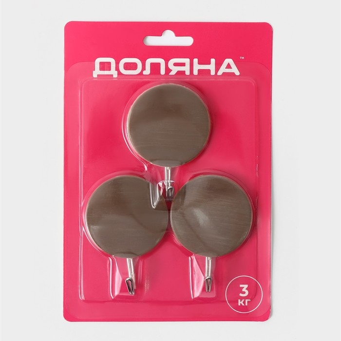 Крючки самоклеящиеся Доляна «Деревянные круги», 3 шт, цвет коричневый