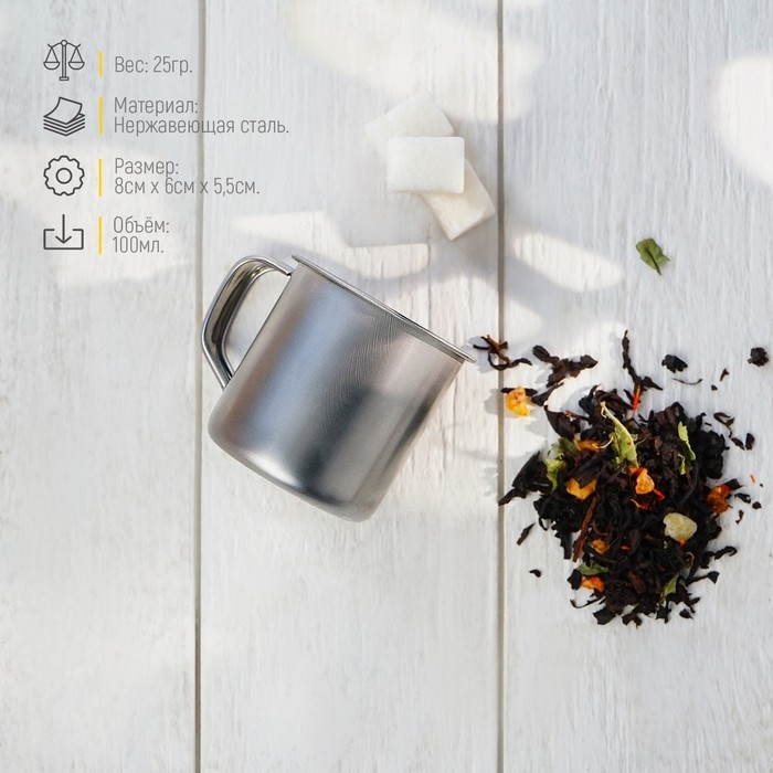 Кружка из нержавеющей стали «Мэйли», 100 мл, d=6 см, цвет хромированный