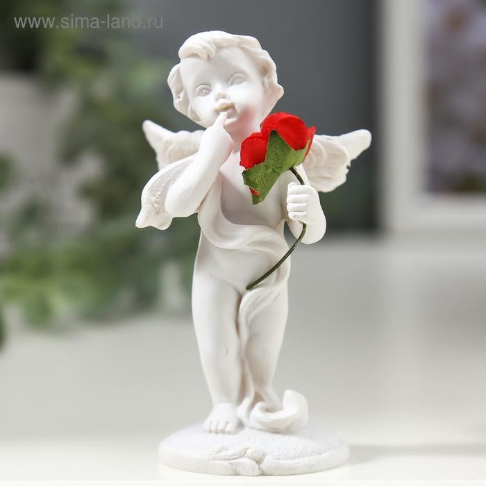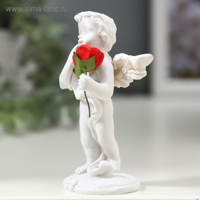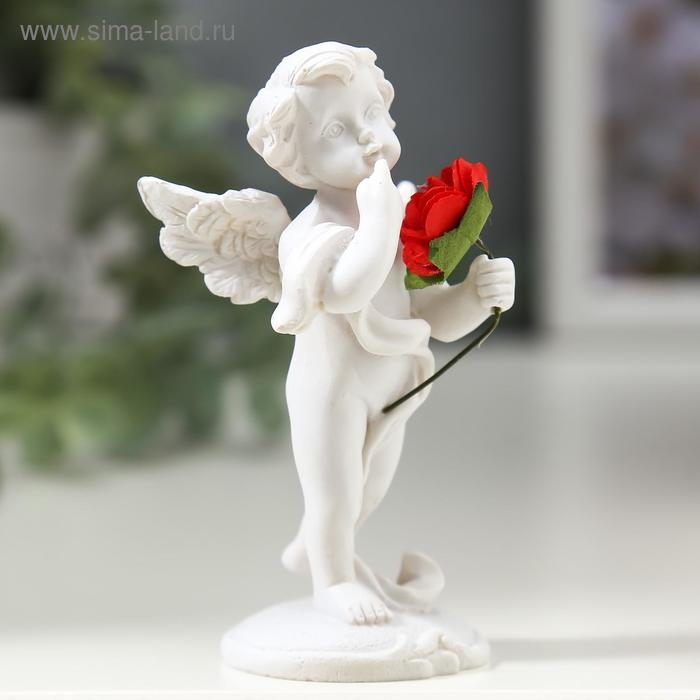 Сувенир полистоун "Ангелочек с красной розой" 8х4,5х3,5 см