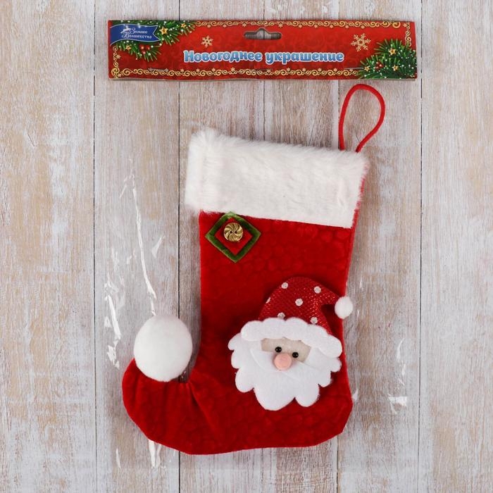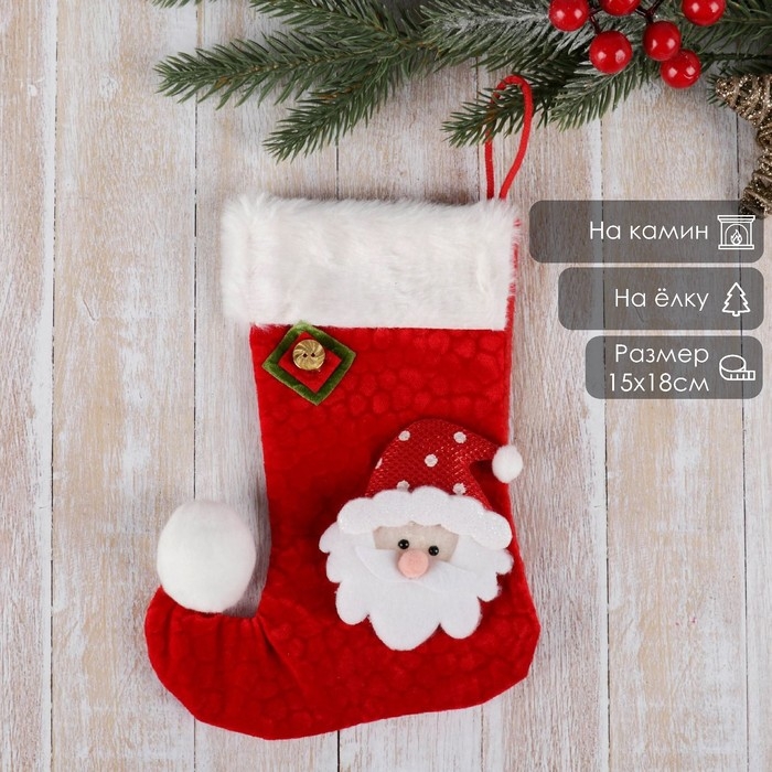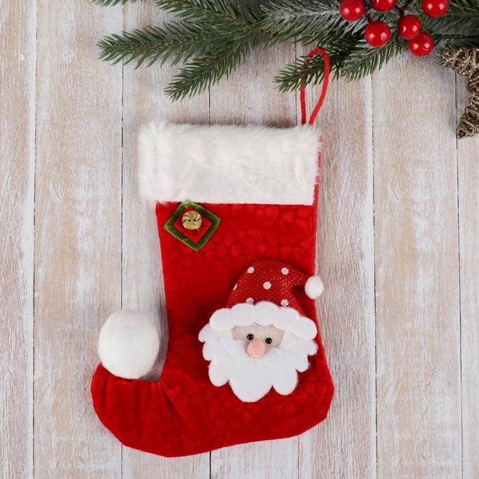 Носок для подарков "Помпошка" Дед Мороз в колпаке, 15х18 см, бело-красный