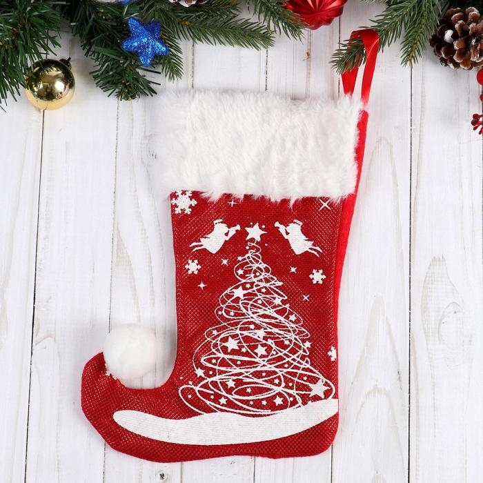 Носок для подарков "Волшебство" ёлочка, 18х25 см, бело-красный