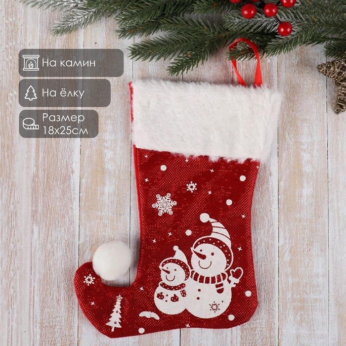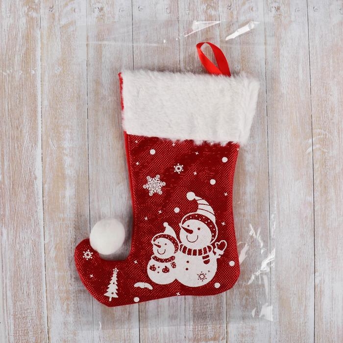 Носок для подарков "Волшебство" Снеговики, 18х25 см, бело-красный