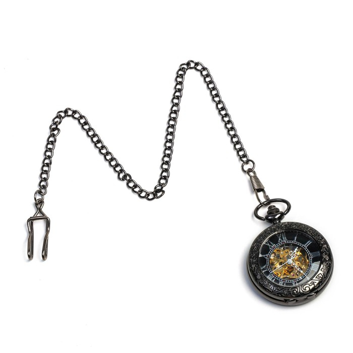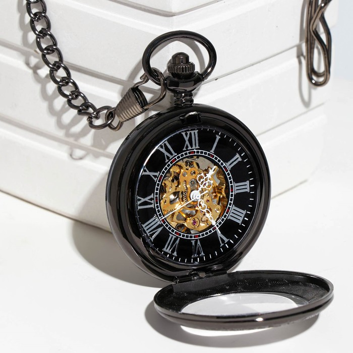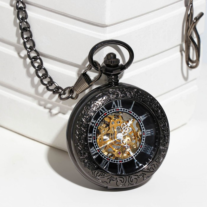 Часы карманные "Скелетон" механические, 5.5 х 4.5 см, d циферблата-4 см
