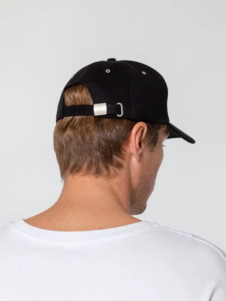 Минималистичная бейсболка с закругленным козырьком и большим местом для нанесения логотипа.