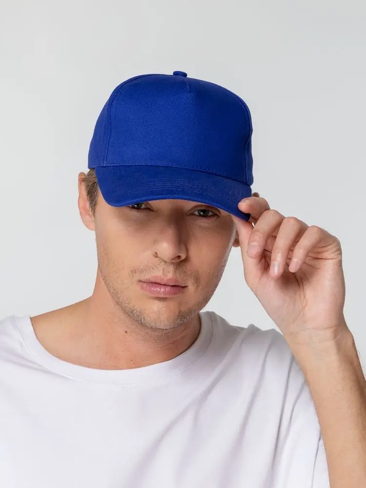 Минималистичная бейсболка с закругленным козырьком и большим местом для нанесения логотипа.