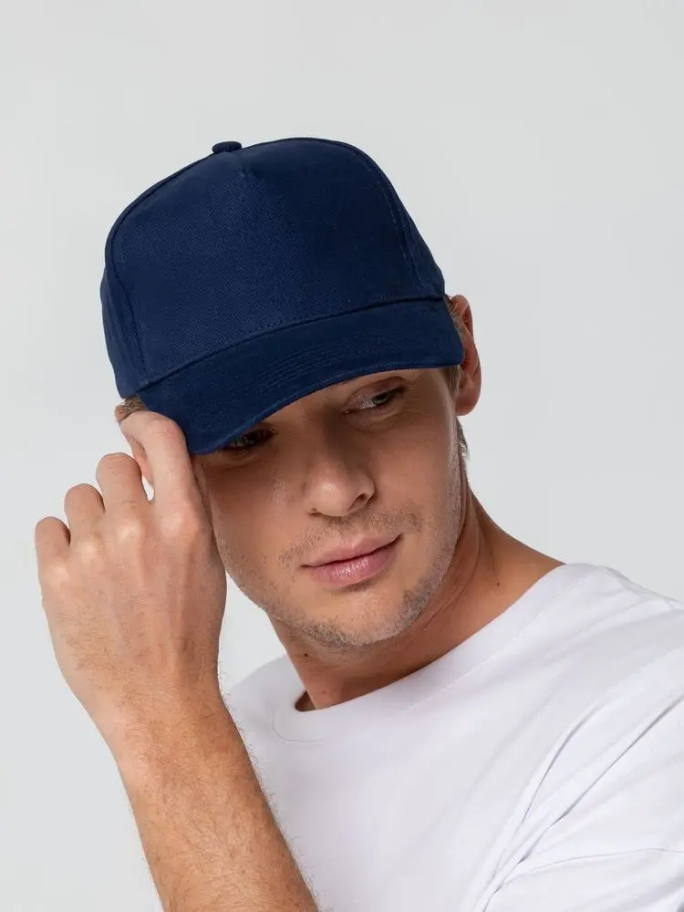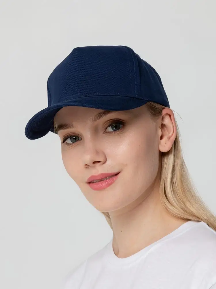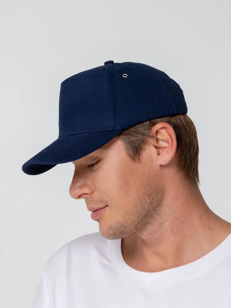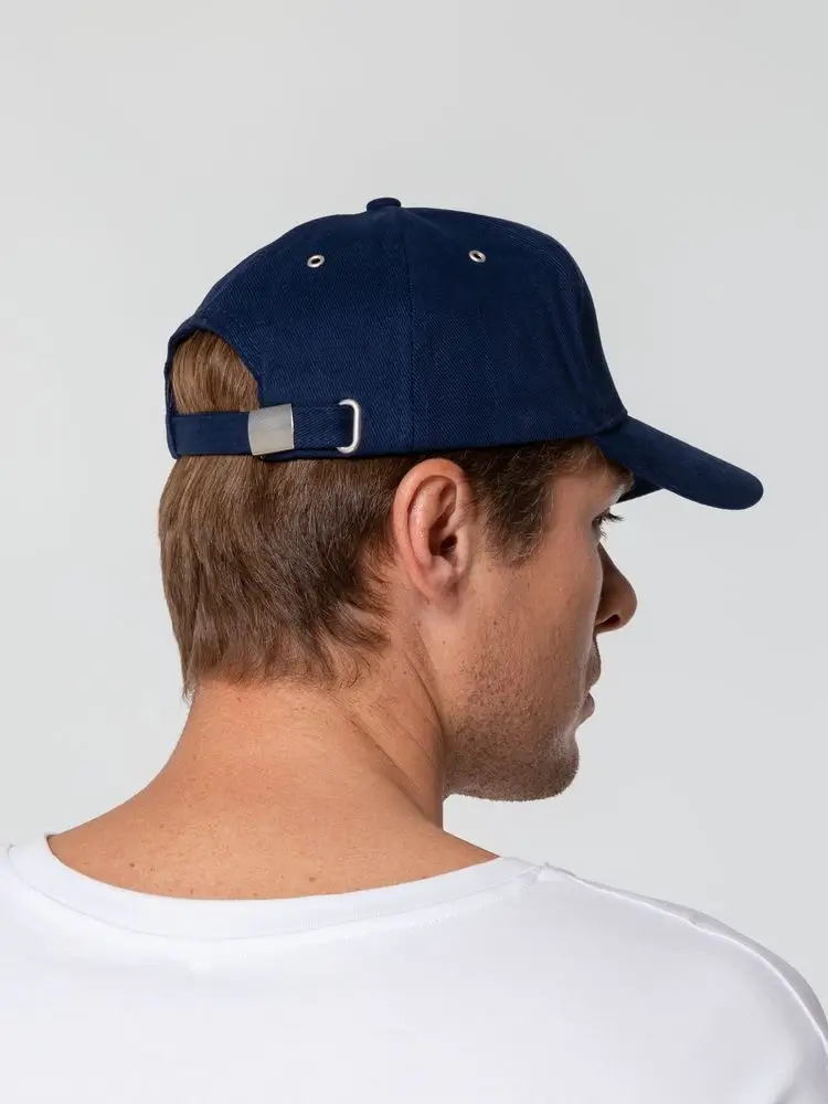 Минималистичная бейсболка с закругленным козырьком и большим местом для нанесения логотипа.
