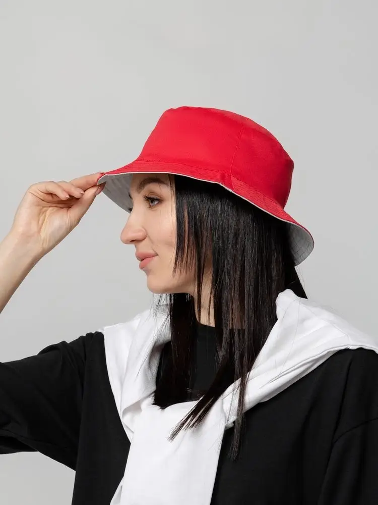 Панама Summer двусторонняя, красная с серым