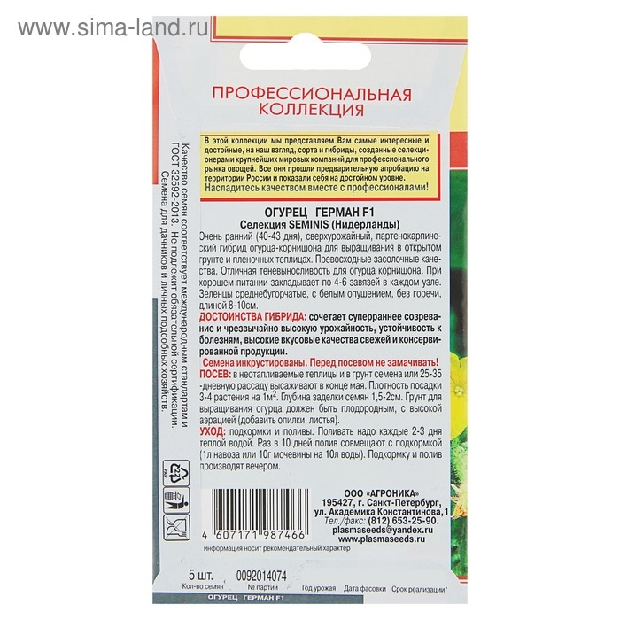 Семена Огурец Герман F1, партенокарпический, 5 шт