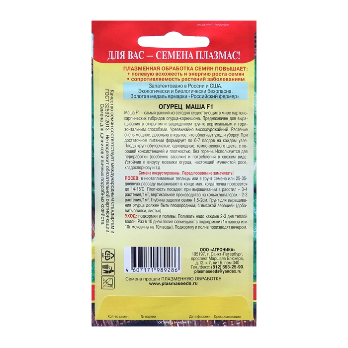 Семена Огурец "Маша" F1, Раннеспелый, партенокарпический, 5 шт