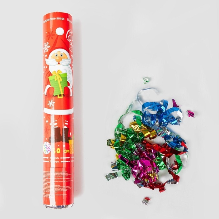 Новогодняя пневматическая хлопушка «С Новым Годом! Дедушка мороз», фольга-серпантин, 30 см