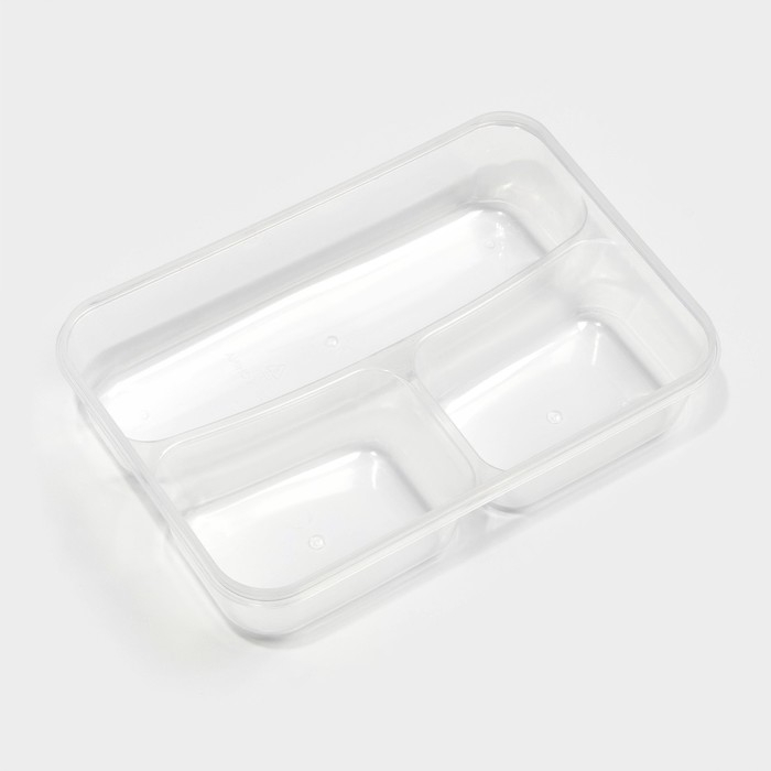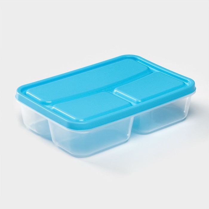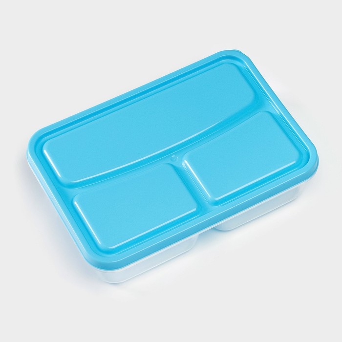 Ланч - бокс пластиковый прямоугольный, 21×14,5×5,5 см, 3 отделения, цвет МИКС