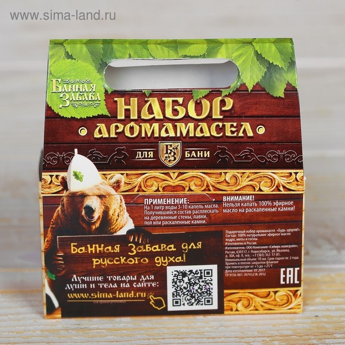 Набор эфирных масел 10 мл "В бане и душа отдыхает" пихта, эвкалипт, можжевельник, мята