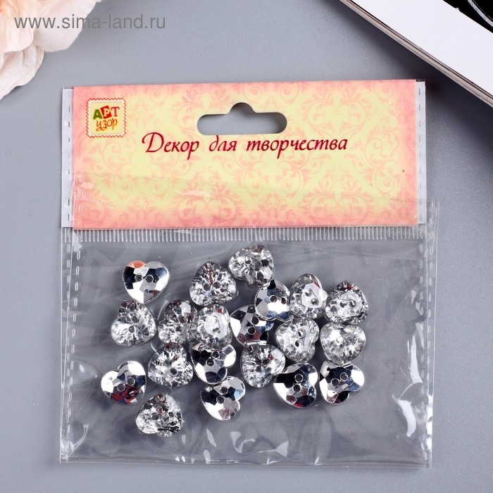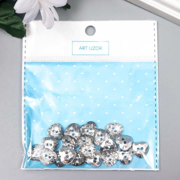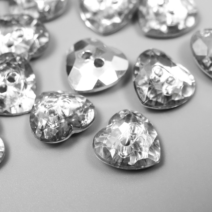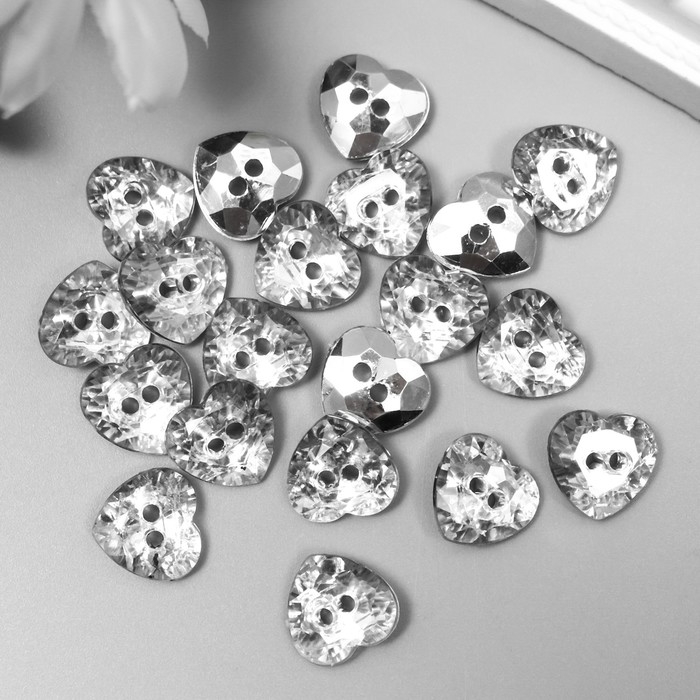 Пуговицы пластик для творчества кристалл "Сердечко" набор 20 шт 1х1,2 см