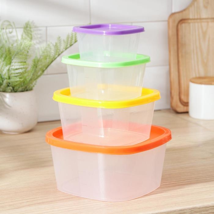 Набор пищевых контейнеров «BioFresh», 4 шт: 0,23 л, 0,5 л, 0,9 л, 1,55 л, прозрачные, крышки микс