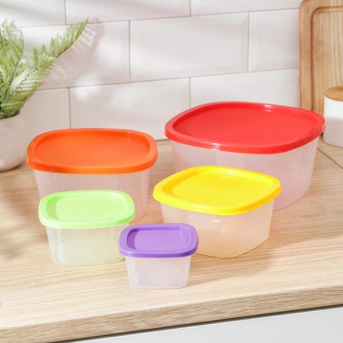 Набор пищевых контейнеров «BioFresh», 5 шт: 0,23 л, 0,5 л, 0,9 л, 1,55 л, 2,65 л, прозрачные, крышки микс