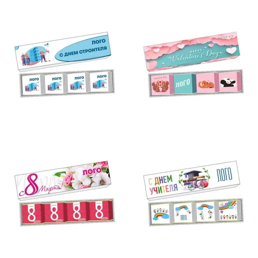- Обертка с полноцветной печатью на каждой плитке шоколада.