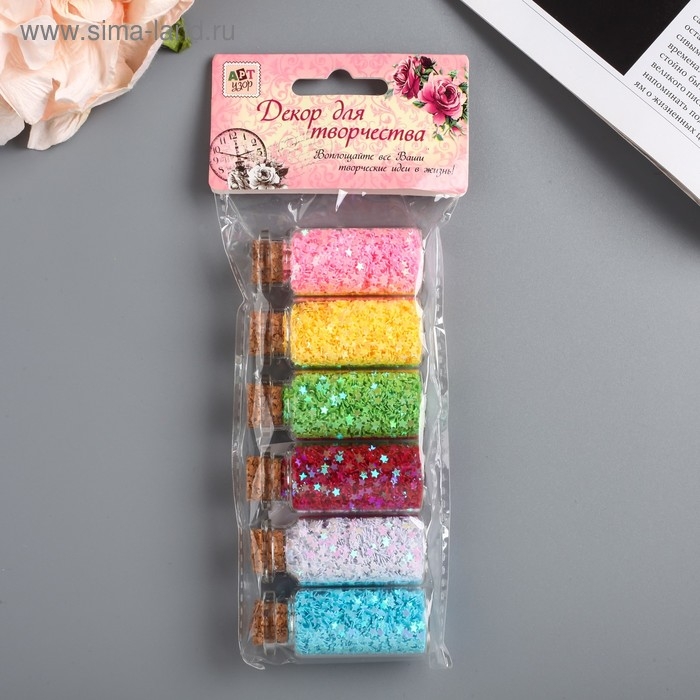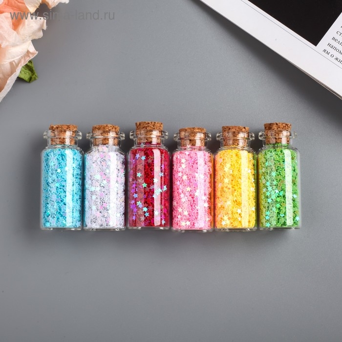 Глиттер в баночке с пробкой "Яркие звёздочки" (набор 6 шт) 6 гр=1 бут. 13х5 см