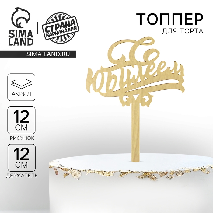 Топпер для торта «С юбилеем», акрил, цвет золотой