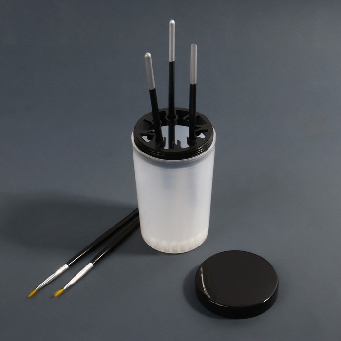 Ёмкость для очистки и хранения кистей, с держателями и крышкой, 200 мл, цвет прозрачный/чёрный