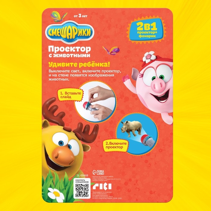 Проектор-фонарик с животными «Смешарики», батарейки в набор не входят